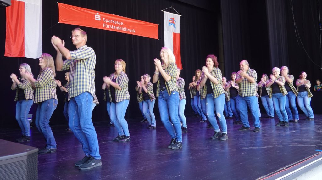 Unsere Tanzeinlage beim Altstadtfest in Fürstenfeldbruck kam wieder sehr gut an. Die Lockerheit und Freude am Line Dance unserer 16 Darbietenden steckte das dicht gedrängte Publikum an und begeisterte es. Es kamen durch die Bank positive Rückmeldungen. Schön war auch, unter den Zuschauern das eine oder andere Gesicht aus früheren Zeiten zu entdecken.